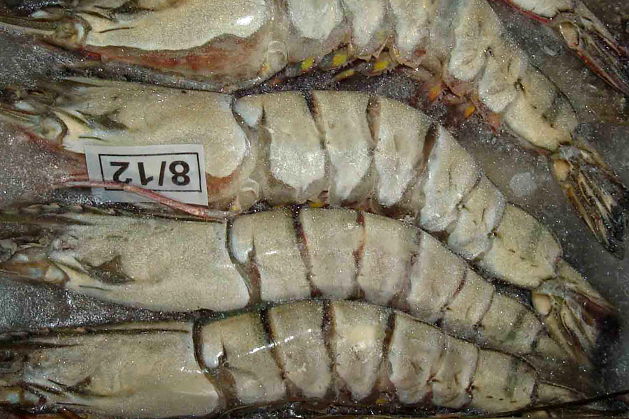 Scientific name Penaeus monodon. Black Tiger Shrimp have a firm texture and a clean – somewhat sweet flavour. Those raised in farms – with lower salinity in the water – tend to be a bit milder than ocean-caught Shrimp. When cooked, meat turns white and their black stripes turn bright red.